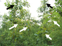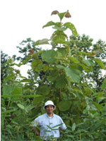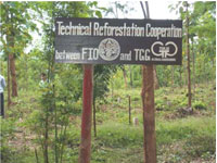 日照条件の違いにより成長に差がありますが、高いものだと4m13cmにもなっていました。 植林後約5年間は除草・施肥などの管理が行われます。上の写真の上段2枚は除草された地域、下段2枚は今後、除草が予定されている地域です。植林地は広大なため、一度に作業をすることは困難で、少しずつ除草が行われます。 また、私たちの植林は無駄な伐採は行わず、もともと生えていたチークはそのまま残しています。植林したチークは、もともと生えていたチークに比べると、まだまだ低いですが、順調に成長していました。 |